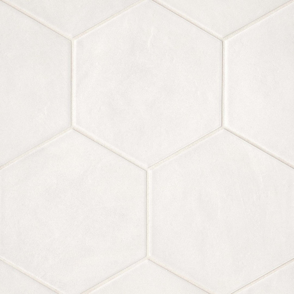 Add geometry to your floors and walls with Allora, an Italian-made matte porcelain tile that comes in three shapes: Rectangle (3”x24”), Rhombus (7.5"x12.75") and Hexagon (8.5”x10”). The neutral colors of White, Gray and Black blend well with any room style. The hexagon shapes also come in three deco options in Fiore (floral pattern), Stella (star pattern) and Telaio (hexagon pattern). Create a solid-colored look, a complete patterned design, or combine the solids and decos for your own look.