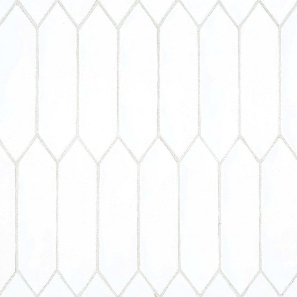 Majestic and regal, Reine, a Spanish-made glazed ceramic wall tile in a picket shape, adds a fresh take on the subway tile. The picket is a unique and eye-catching shape much like the points in a queen’s crown. Reine is a 3”x12” tile offered in a matte finish in eight earthy colors: White, Ivory, Grey, Golden, Castle Moss Green, Gentleman’s Grey, Dark Teal and Black. White is also offered a glossy finish. Stack it vertically or horizontally for a geometric tile pattern or consider a braided arrangement for an organic-inspired flow. This collection is complete with a matte ½”x8” Jolly - Miter Edge Trim, with a glossy version offered in White.