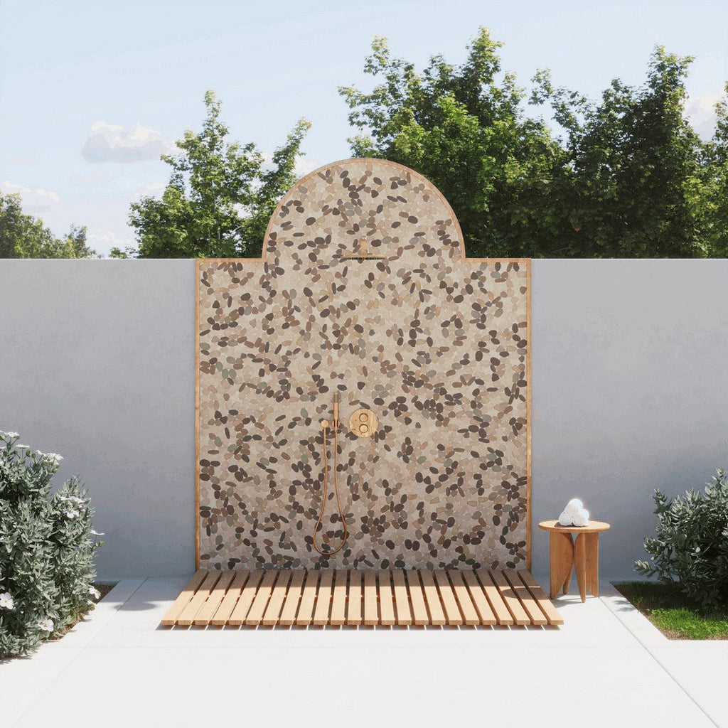 The Waterbrook Collection, influenced by the shallows and shorelines of lakes, rivers, and oceans, presents pebble mosaics in 18 natural hues. Your living space can instantly adopt an outdoorsy ambiance with Waterbrook, whether applied in the shower, on an accent wall, or around a fireplace. The organic aesthetic is further enriched by subtle variations in stone size, shape, and detail, enabling a smooth transition from one mosaic sheet to the next and creating a striking blanket effect of pebbles