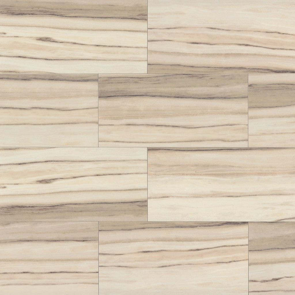 The Zebrino Collection presents a whimsical interpretation of stripes and lines, featuring high-tech porcelain that mimics the elegance of marble. It is offered in four gentle shades and four different sizes. Additionally, this collection provides customization with special order trim choices, including lively mosaics and playful wood-accent pieces.