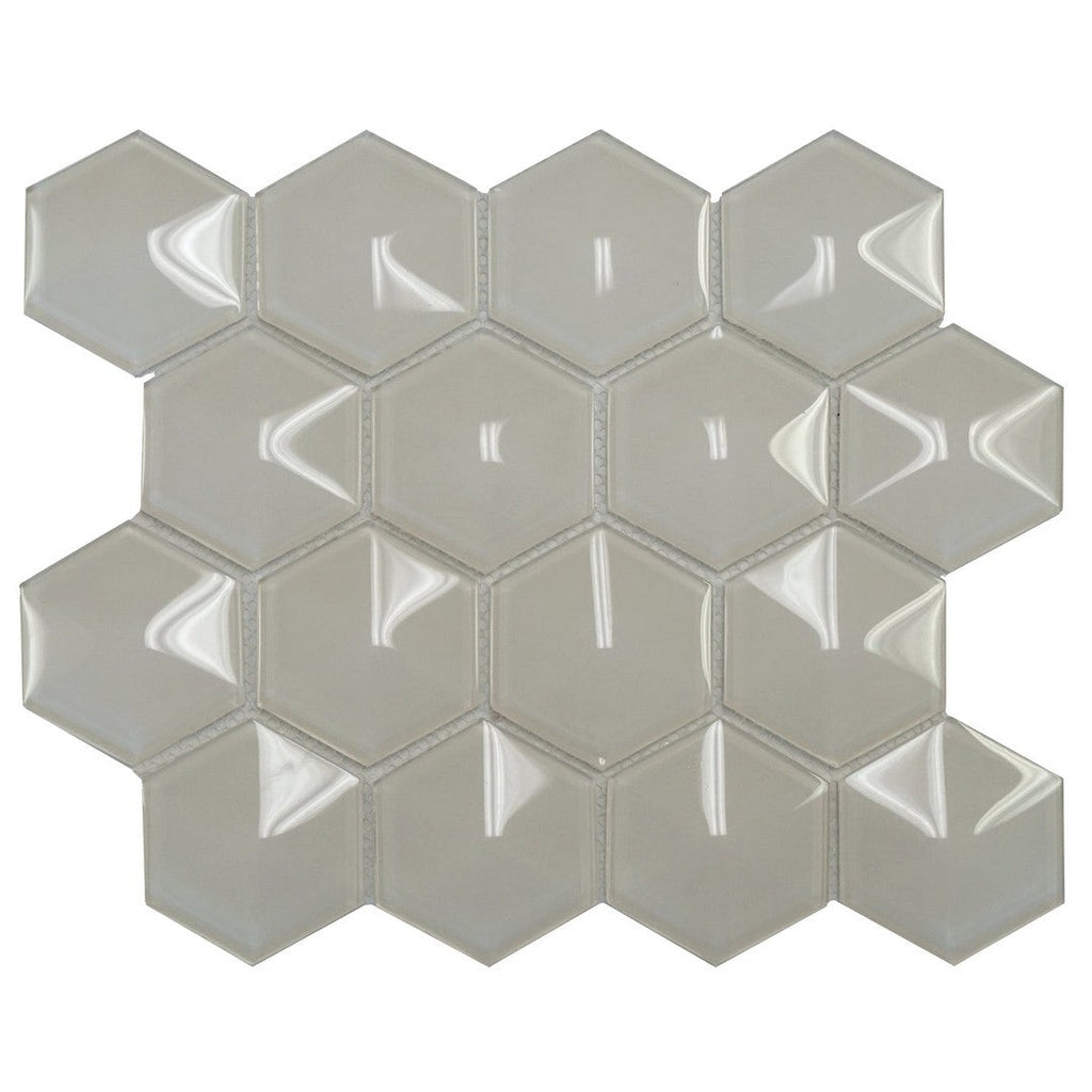Ottimo Dimension Hexagon 10 x 12 Glossy Glass Mosaic features a sleek geometric design with a radiant high-gloss finish. Ideal for backsplashes, shower walls, and decorative accents, this mosaic tile adds depth and modern elegance to any interior. The reflective surface enhances light, creating a bright and sophisticated ambiance, making it a stunning choice for contemporary and upscale spaces.