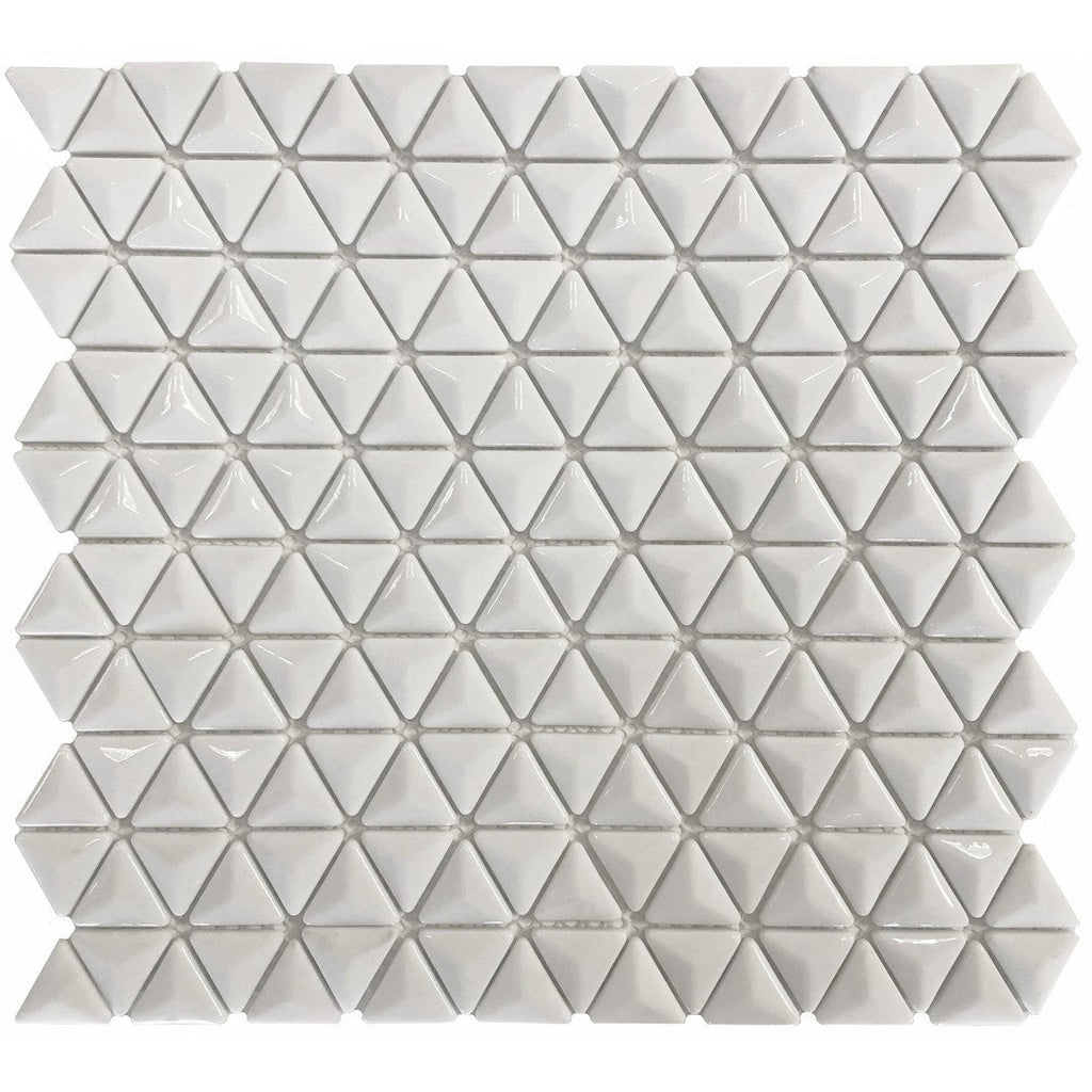 Ottimo Peak 11.5 x 11.5 Glossy & Matte Glass Triangle Mosaic features a dynamic geometric design with a mix of reflective and soft finishes. Ideal for accent walls, backsplashes, and shower surrounds, this mosaic tile creates a visually striking effect that enhances contemporary interiors. Its durable glass construction ensures long-lasting beauty and easy maintenance in both residential and commercial applications.
