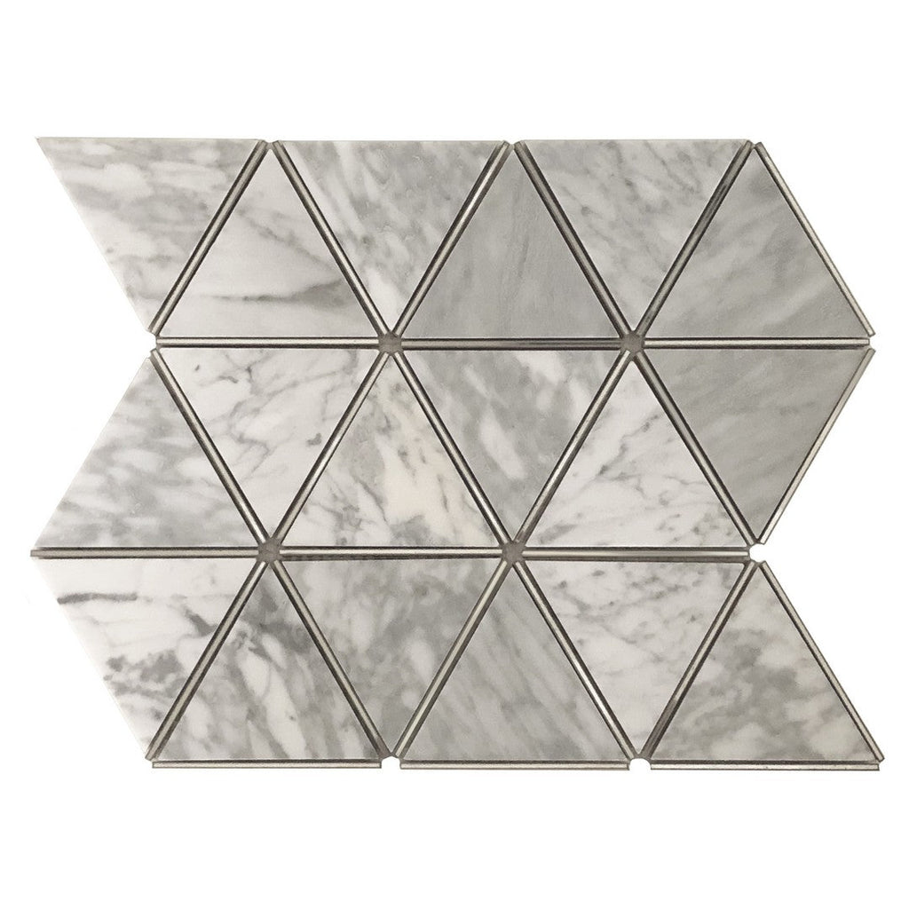 Ottimo Prism 11 x 13 Matte Stone & Stainless Steel Mosaic delivers a bold and industrial-inspired look with its combination of natural stone and sleek stainless steel elements. Perfect for accent walls, backsplashes, and decorative installations, this mosaic tile adds dimension and contrast to modern spaces. Durable and visually striking, it enhances both residential and commercial interiors with a refined yet edgy appeal.