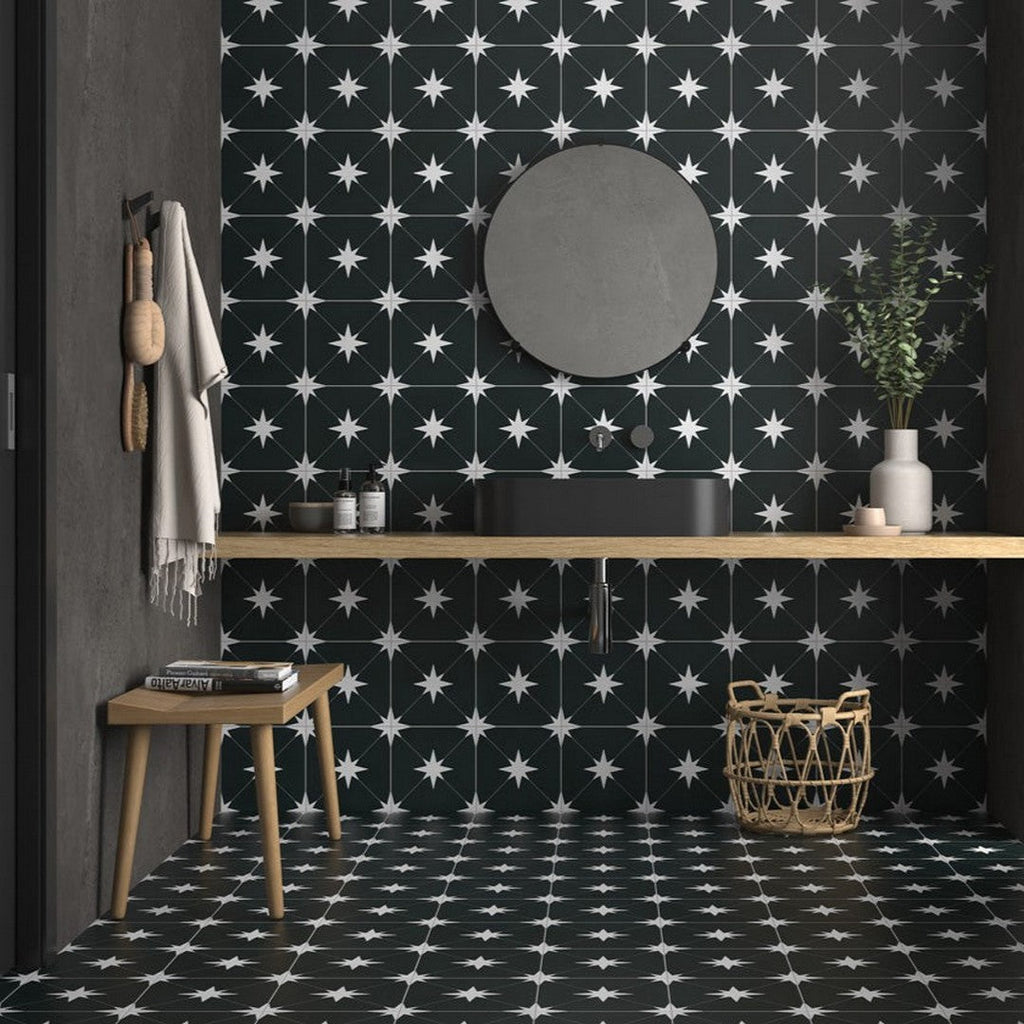 Ottimo Starburst 8.7 x 8.7 Matte Ponent Porcelain Tile features an eye-catching geometric pattern with a subtle matte surface. Perfect for creating statement floors and feature walls, this porcelain tile adds artistic flair to contemporary and eclectic interiors. Its durable composition ensures long-lasting beauty and functionality.