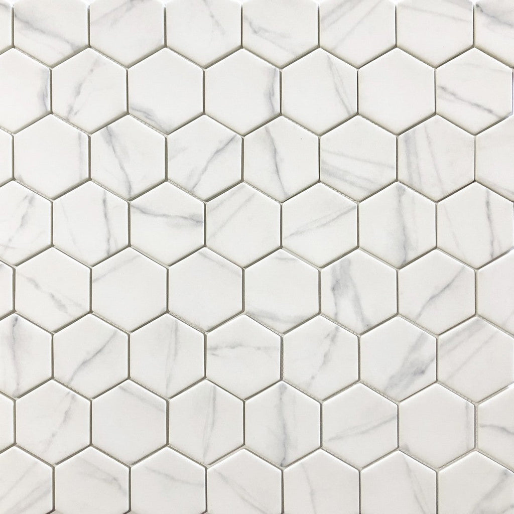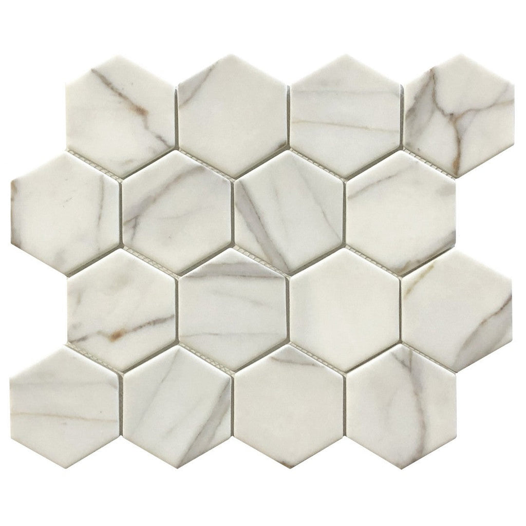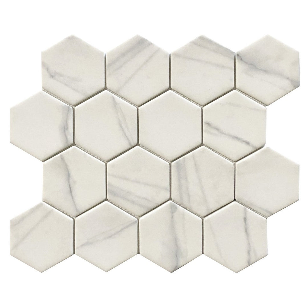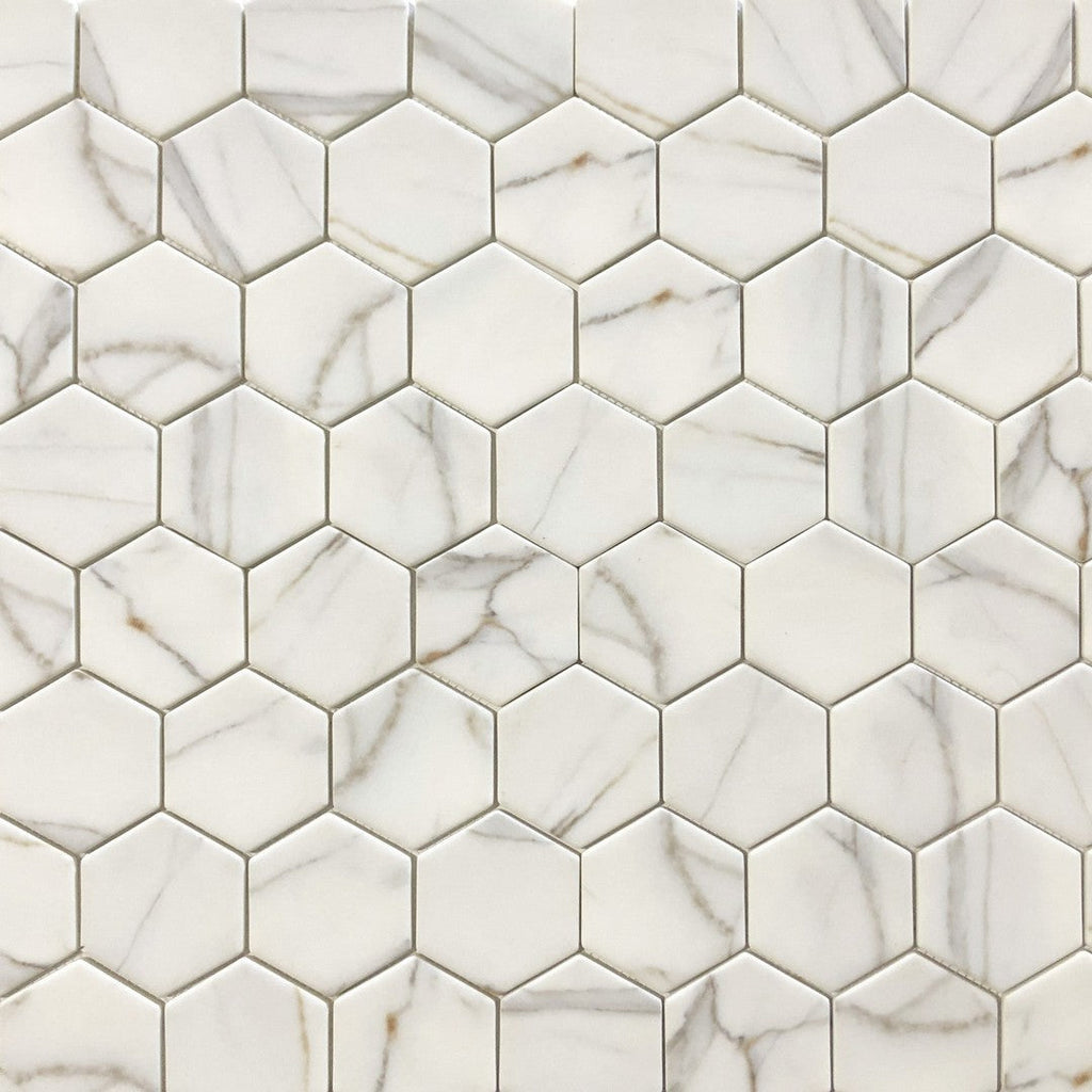 Ottimo Verona 11 x 13 Matte Glass Hexagon Mosaic adds a modern touch with its geometric hexagonal shape and matte glass surface. Ideal for contemporary kitchens, bathrooms, and feature walls, this mosaic tile creates a clean, stylish aesthetic. Its durable construction and unique design make it a standout choice for elegant interiors.